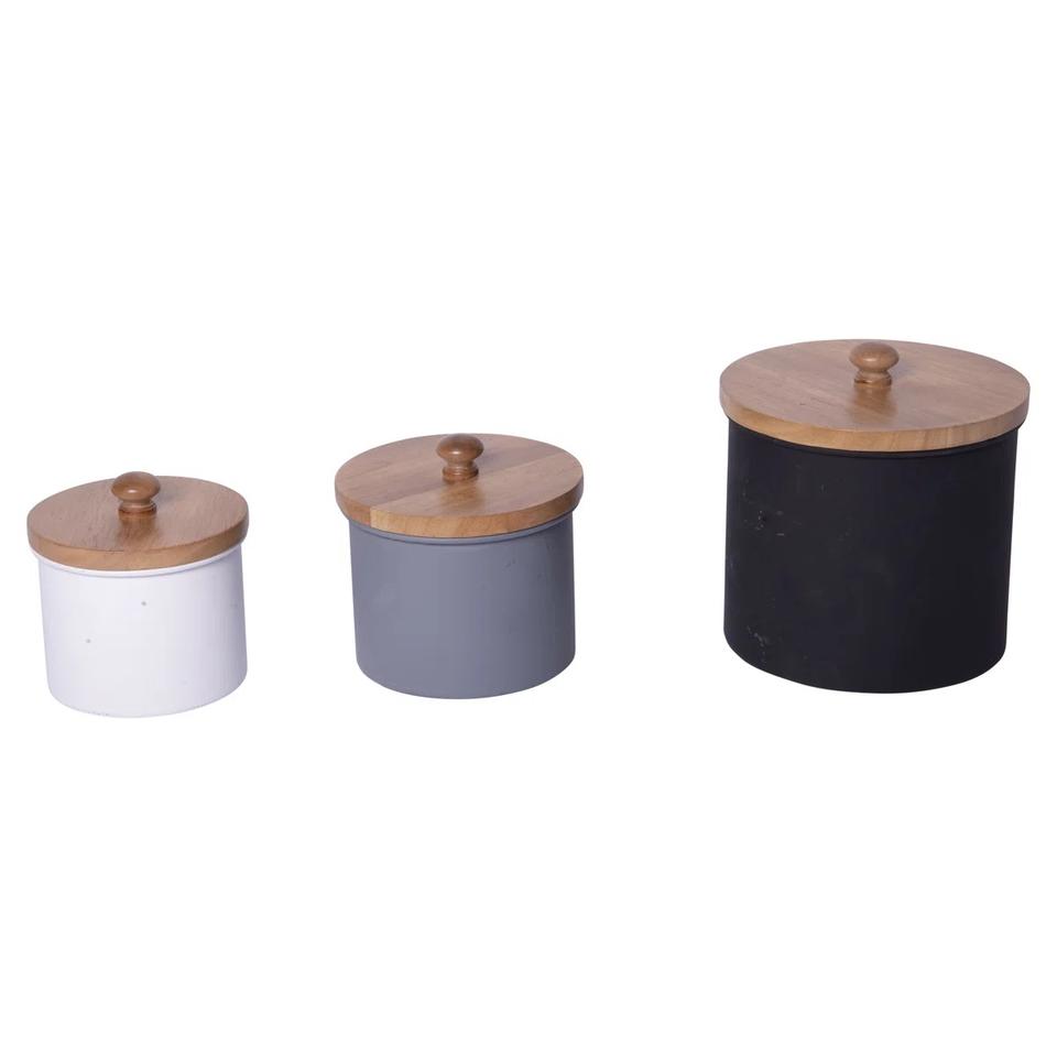 กระป๋องใส่เครื่องเทศ/น้ำตาลเคลือบผงโลหะ พร้อมฝาไม้ ขายดีที่สุด