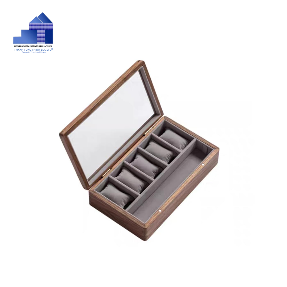 กล่องใส่เครื่องประดับไม้ทรงสี่เหลี่ยมทันสมัยแบบพรีเมียมขายดี ทนทาน คุณภาพดี จากโรงงานเวียดนาม ราคาโรงงาน