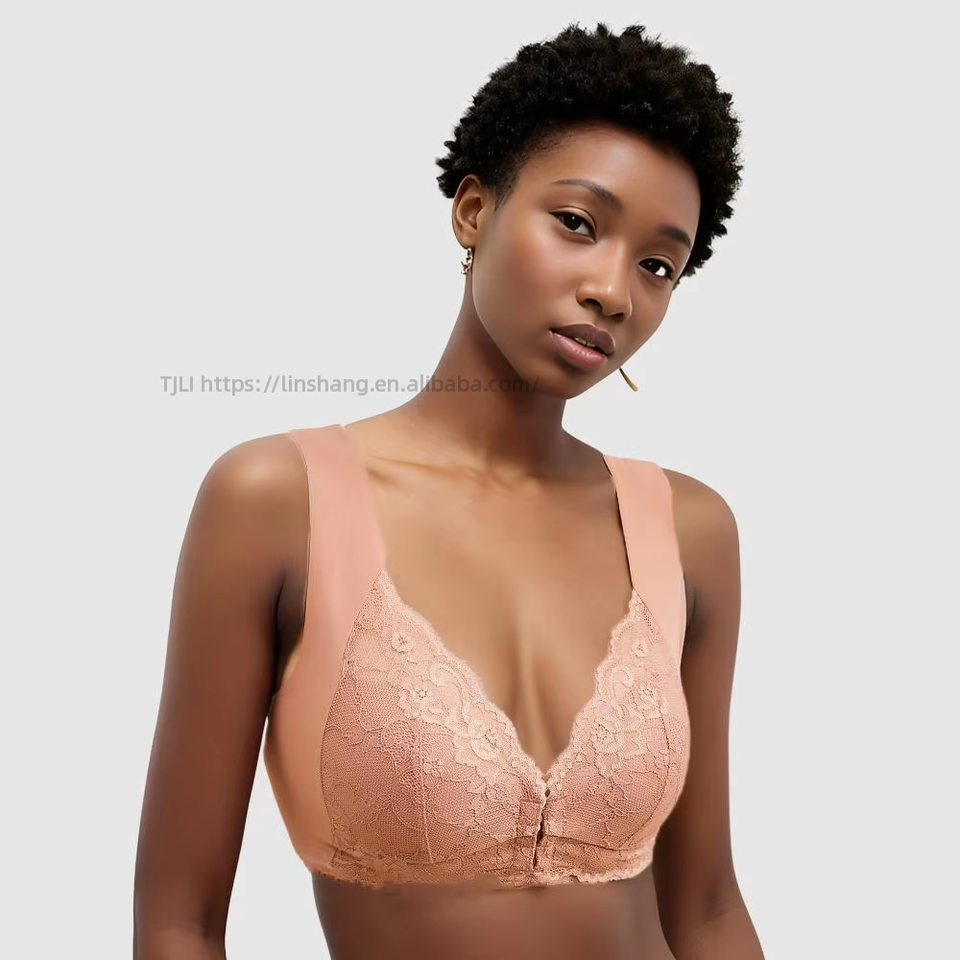 ชุดชั้นในผู้หญิงแฟชั่นแบบไร้โครง ผ้าลูกไม้ ไซส์พลัส ขายดีที่สุด ดีไซน์เซ็กซี่ ติดกระดุมด้านหน้า