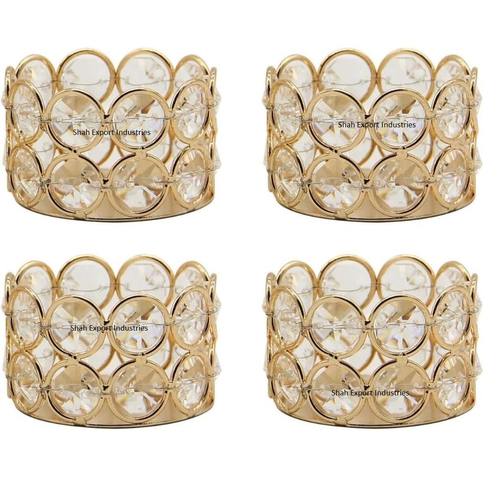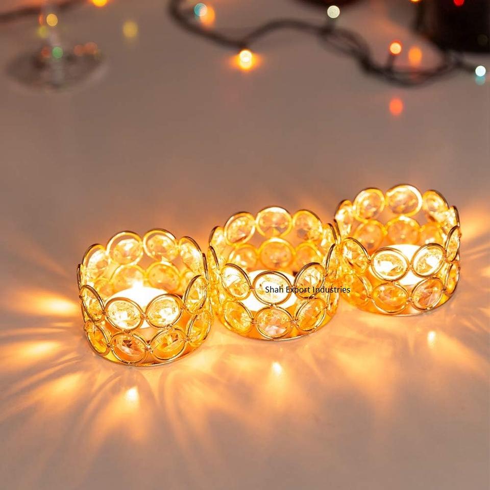 เชิงเทียนโลหะคริสตัลสีทองเป็นประกายสำหรับตกแต่งบ้าน