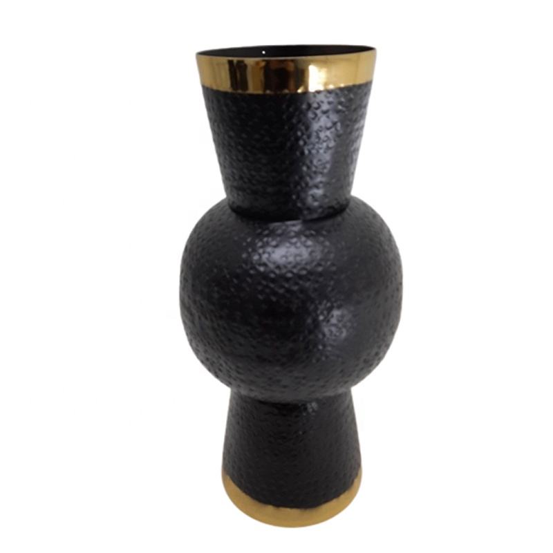 ขายดีที่สุดแจกันดอกไม้อลูมิเนียมบนโต๊ะพร้อมสีทองและสีดําตอกแก้วขนาดเล็กและแจกันเซรามิก