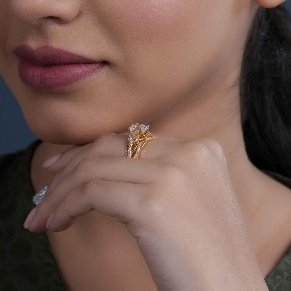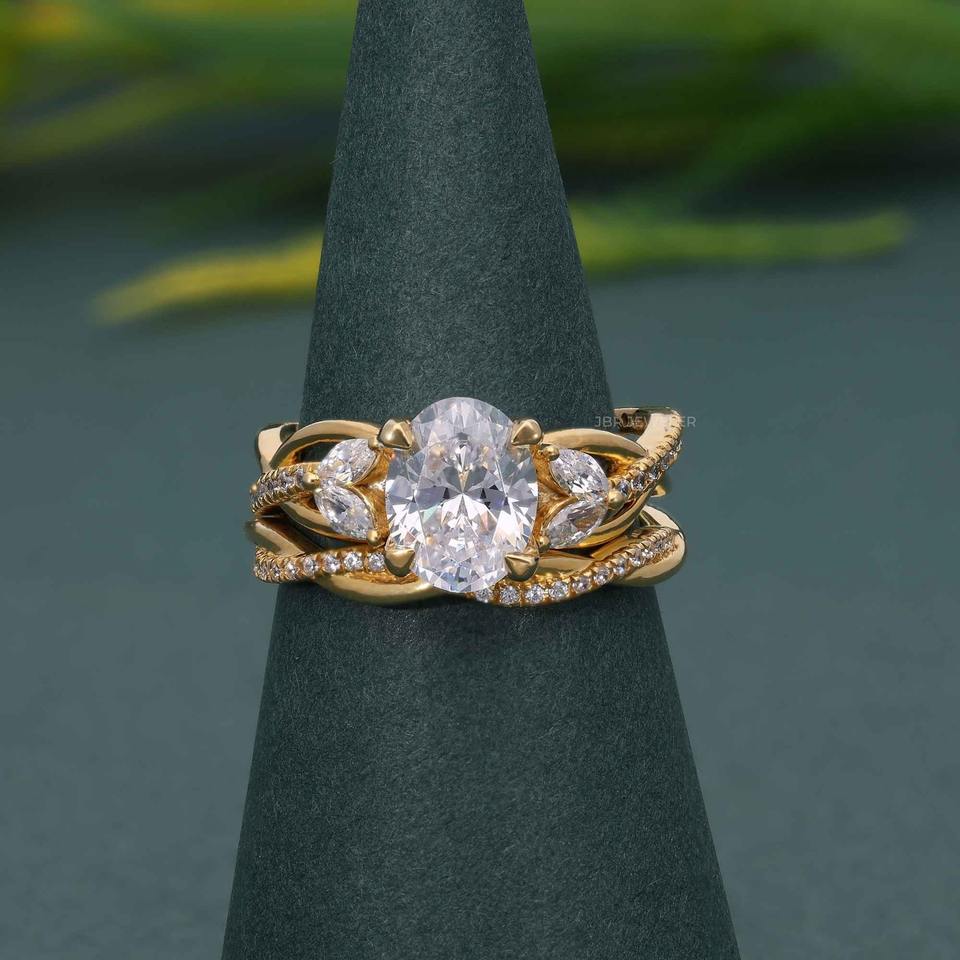 ชุดเครื่องประดับเพชรทรงรีบิดเกลียว ยอดขายดีที่สุด ได้รับการรับรองจาก IGI ระดับความสะอาด VVS เพชรเพาะเลี้ยงในห้องปฏิบัติการ พร้อมแหวนหมั้นทองคำแท้ 14k ดีไซน์เข้าชุดกับแหวนแต่งงาน