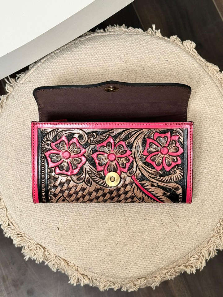 Type:Western Floral Hand Tooled Leather Flap Wallet