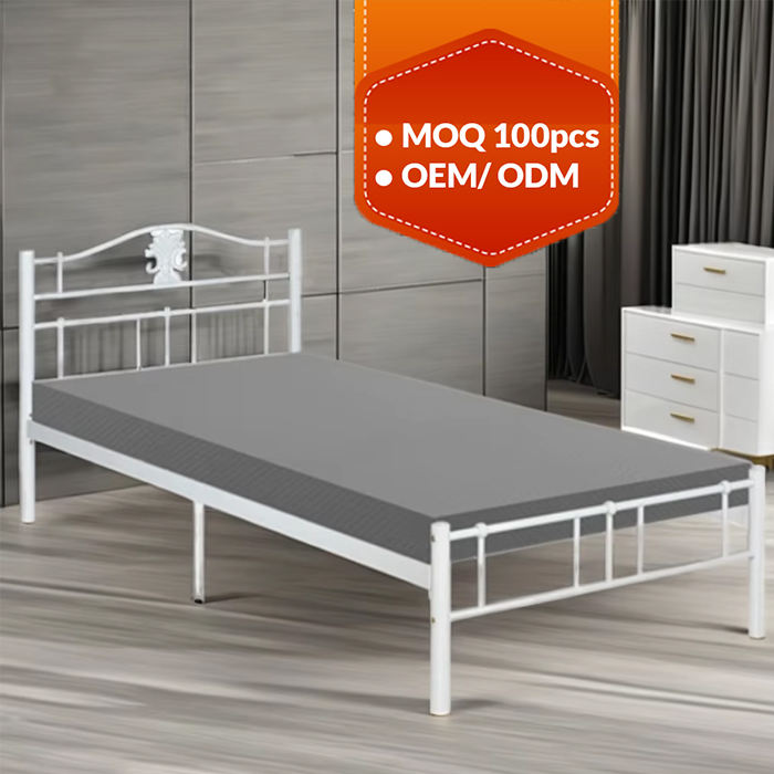 เตียงนอนโครงโลหะสีขาวโครงเตียงโลหะเดี่ยวสำหรับนักเรียนโฮสเทลซื้อเฟอร์นิเจอร์ห้องนอนจำนวนมาก