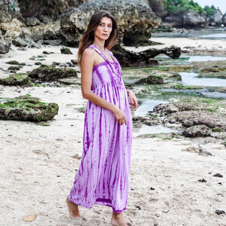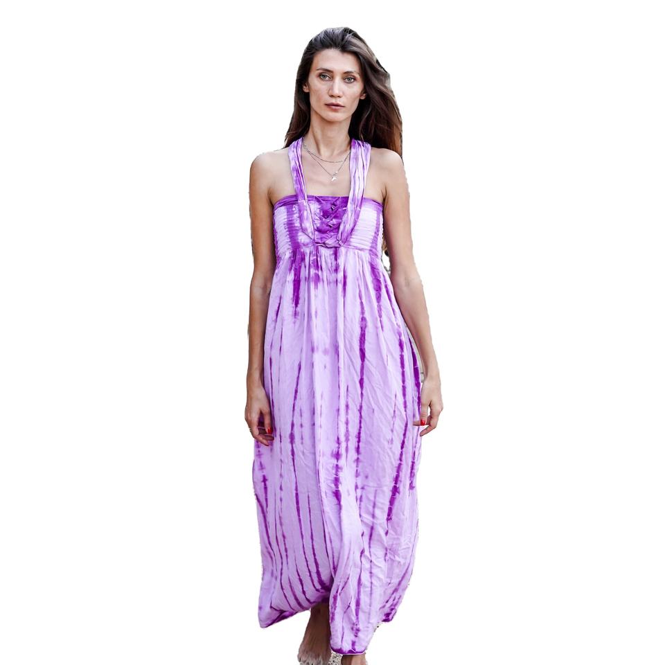 เดรส DR016-007R2-F ยาวคล้องคอสำหรับผู้หญิงชุดเดรสผ้าเรยอนผ้าเรยอน100% ออกแบบได้ตามต้องการสำหรับฤดูร้อน