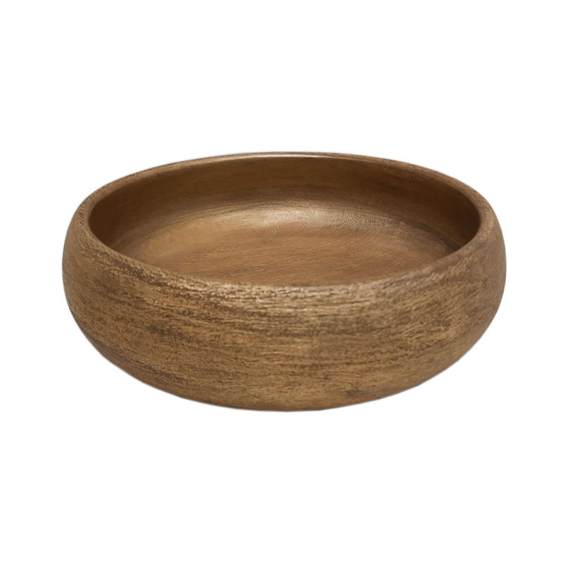 ชามผลไม้ทรงกลมทำจากไม้ธรรมชาติสำหรับห้องครัวและบนโต๊ะชามเสิร์ฟอาหารและขนมทำด้วยมือ