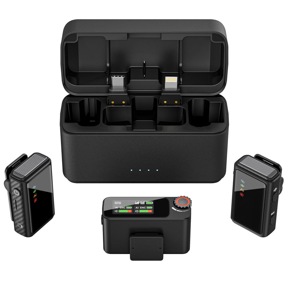 ไมโครโฟนไร้สายแบบหนีบเสื้อคู่ 2.4G รุ่นขายดี พร้อมหัวต่อ Type C ตัดเสียงรบกวน สำหรับสมาร์ทโฟนและ Youtube