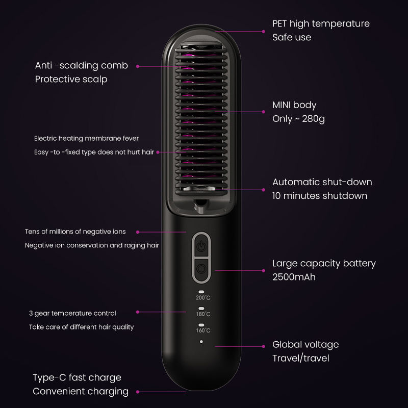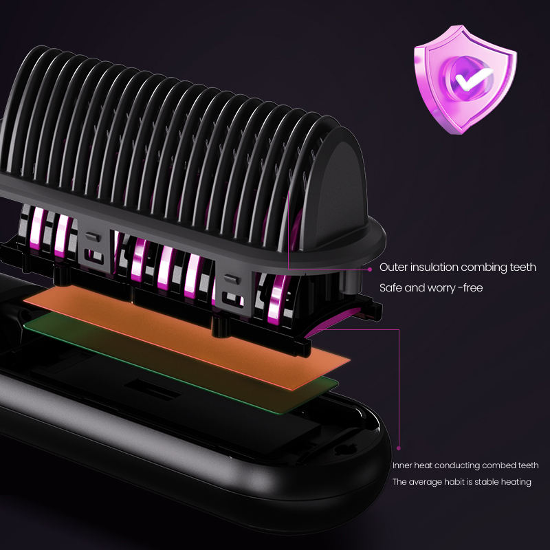 เครื่องหนีบผมแบบพกพาขายดีรุ่นใหม่ แปรงหวีผมไร้สาย ปล่อยประจุลบ เครื่องหนีบผมไร้สาย