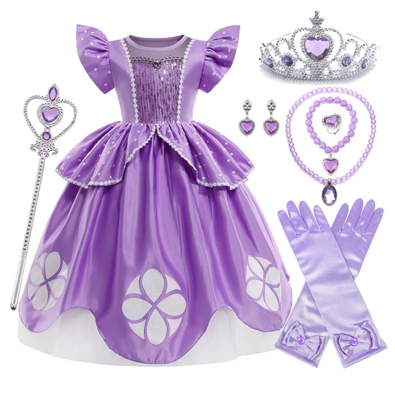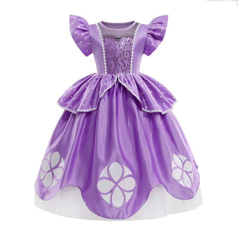 สินค้าขายดีประจำปี 2023 ชุดคอสตูมแขนสั้นราพันเซลสำหรับเด็กผู้หญิง ชุดเจ้าหญิงโซเฟีย DISP-005