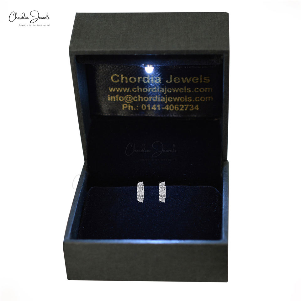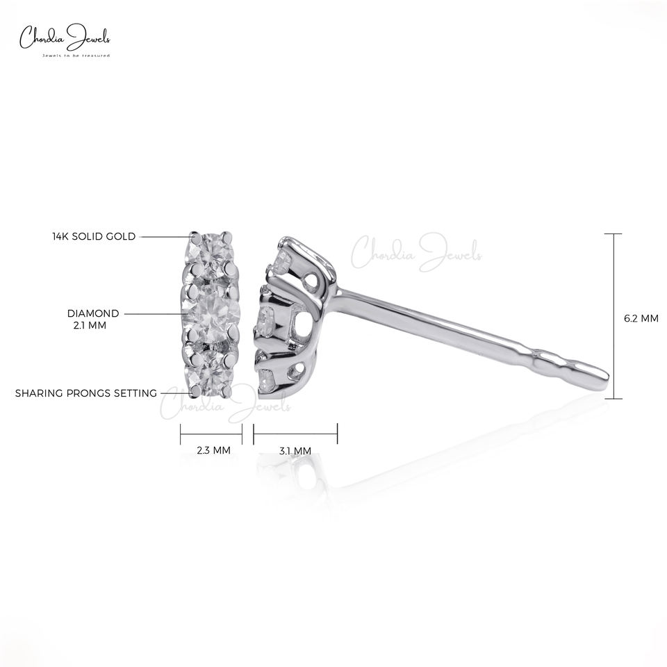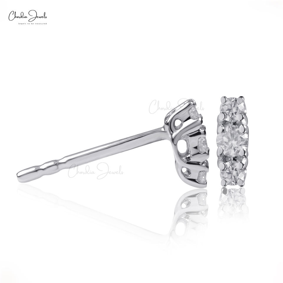 ขายดีที่สุด0.14 CTW สามเม็ดสโตน14K ต่างหูเม็ดกลมแบบกดสีทองขาวทึบ G-H เพชรอุปกรณ์ทำมือ
