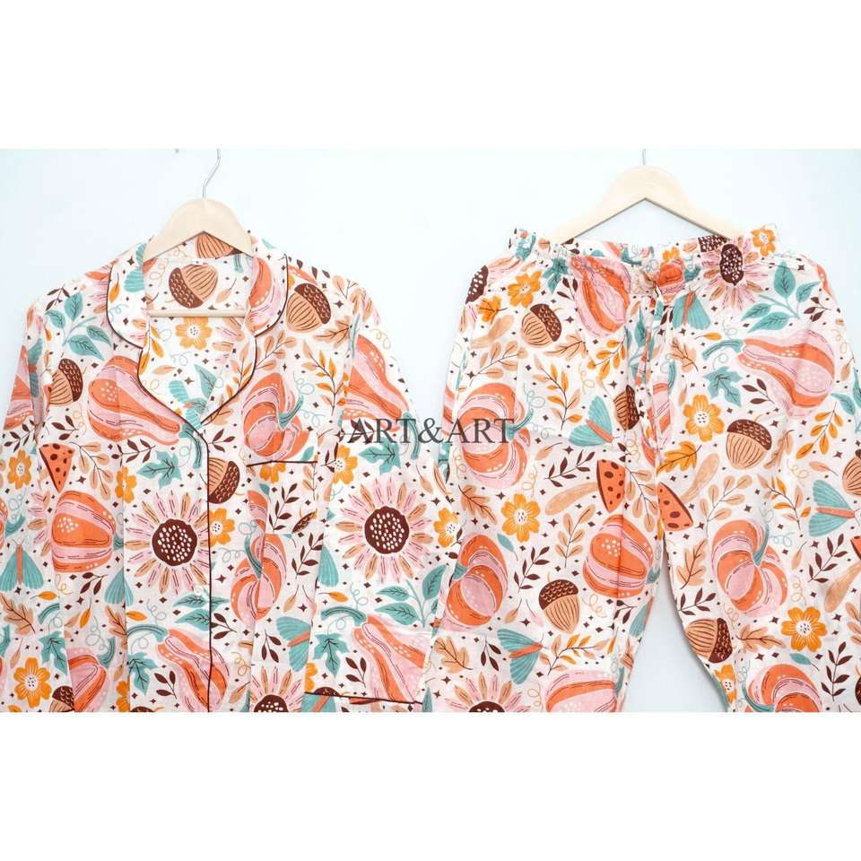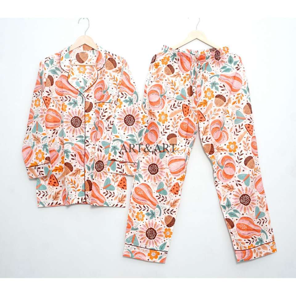ชุดนอนผ้าฝ้ายแท้ 100% ขายดีที่สุด แขนยาว สวมใส่สบาย ชุดนอนแสนอบอุ่นสำหรับผู้หญิง ชุดลำลองติดกระดุมแบบคลาสสิก