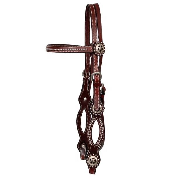 หมวกสวมศีรษะแบบตะวันตกหนังวัว100% มีดีไซน์คอนโซลและล้อสำหรับผลิตภัณฑ์ม้าขายส่ง