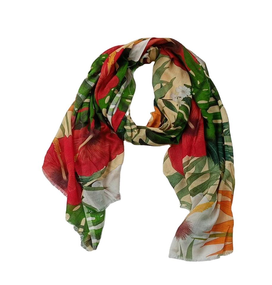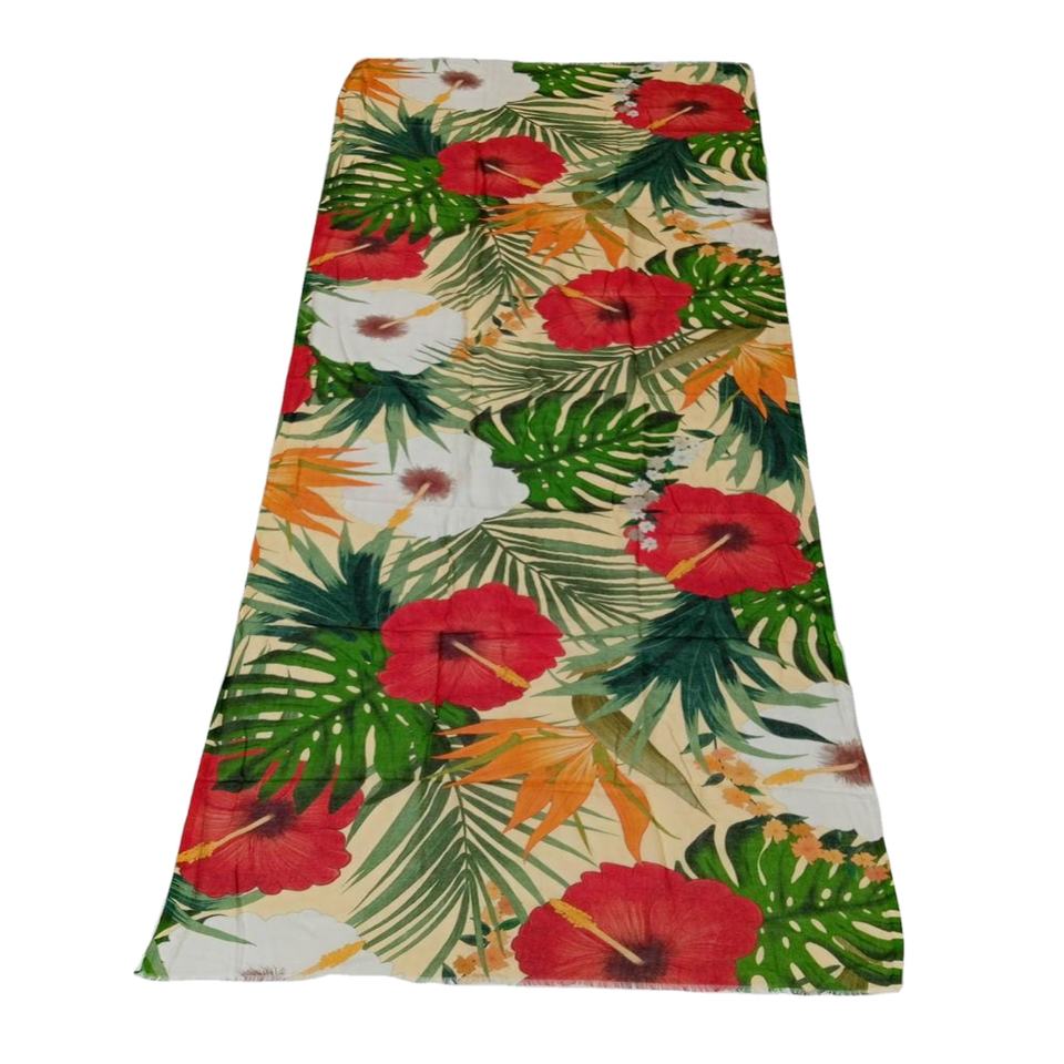 ผ้าพันคอผ้าฝ้ายโมดอลสำหรับผู้หญิงผ้า100% พิมพ์ลายดอกไม้ลายดอกฮิบิสคัสผ้าคลุมไหล่ดิจิตอลเนื้อนุ่มมีสไตล์