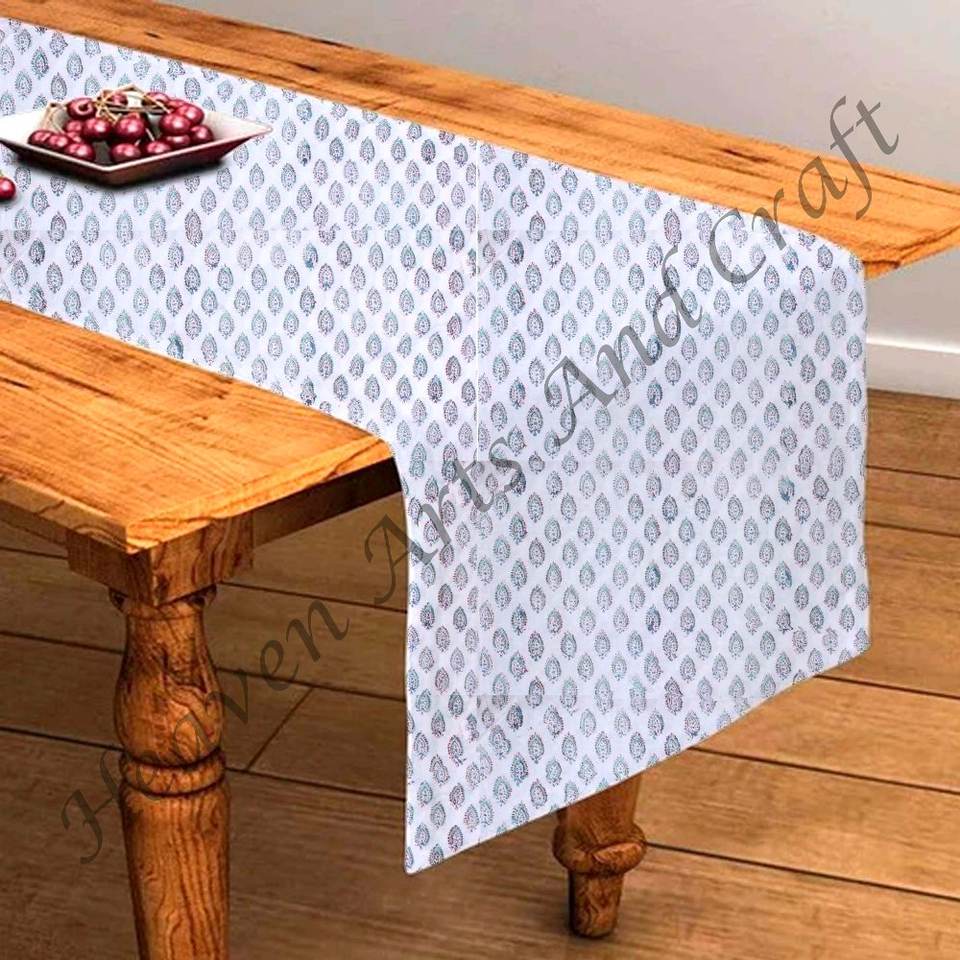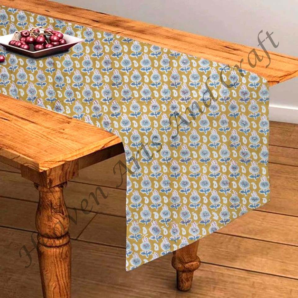 ผ้าปูโต๊ะผ้าฝ้ายแท้แบบ100% วิ่งวางโต๊ะผ้าปูโต๊ะผ้าคอตตอนแท้พิมพ์ลายดอกไม้ดีไซน์แบบดั้งเดิม