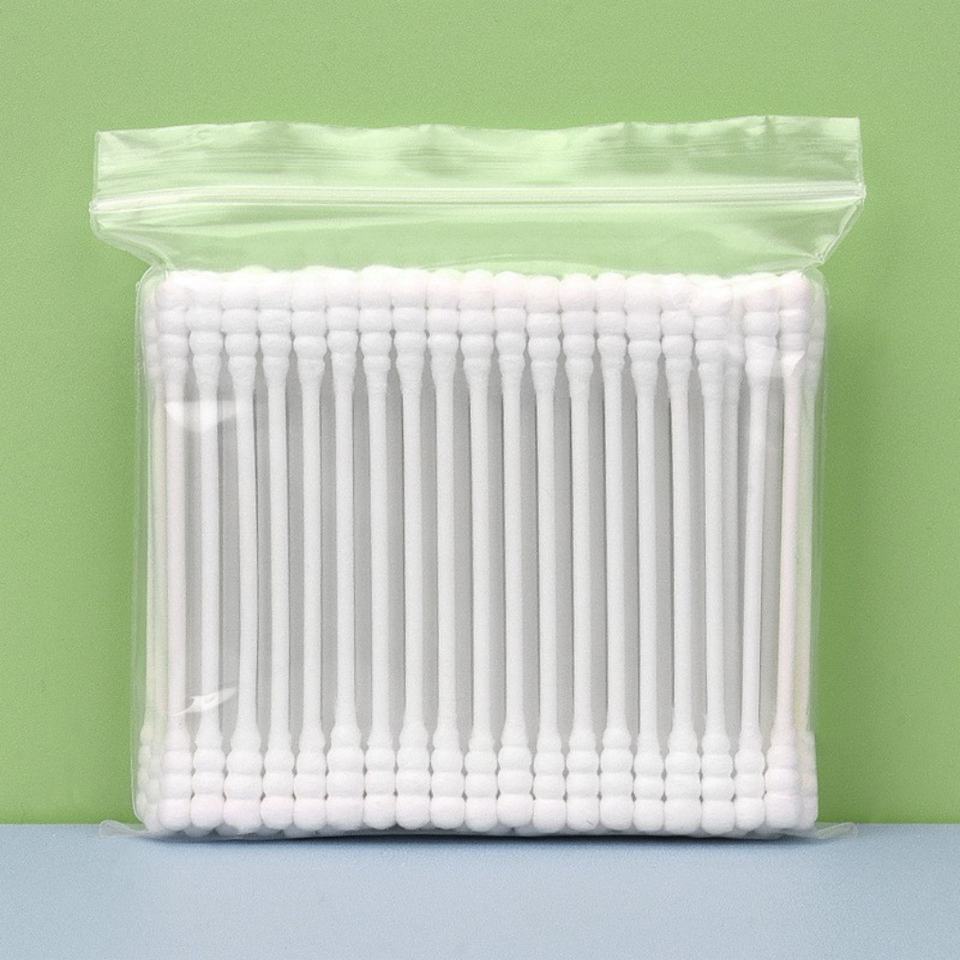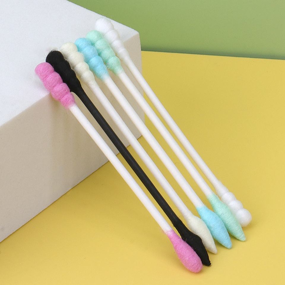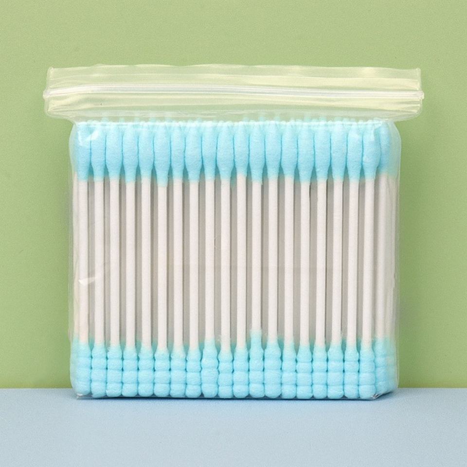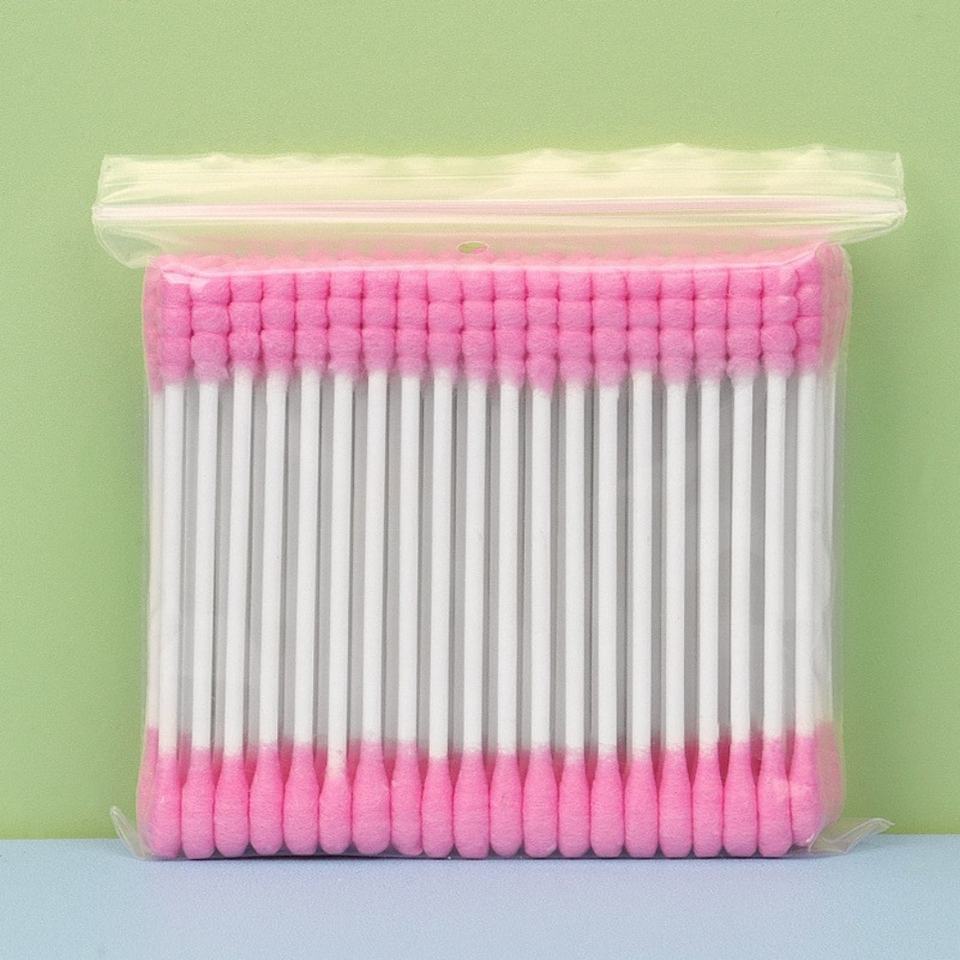 สำลีสองหัวแบบใช้แล้วทิ้งสำหรับทำความสะอาดหูในครัวเรือนสี100ชิ้น/ถุงแบบใช้แล้วทิ้ง