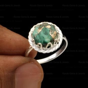 Natural Chrysocolla Copper Shape Sterling Silver Gold Plated Ring