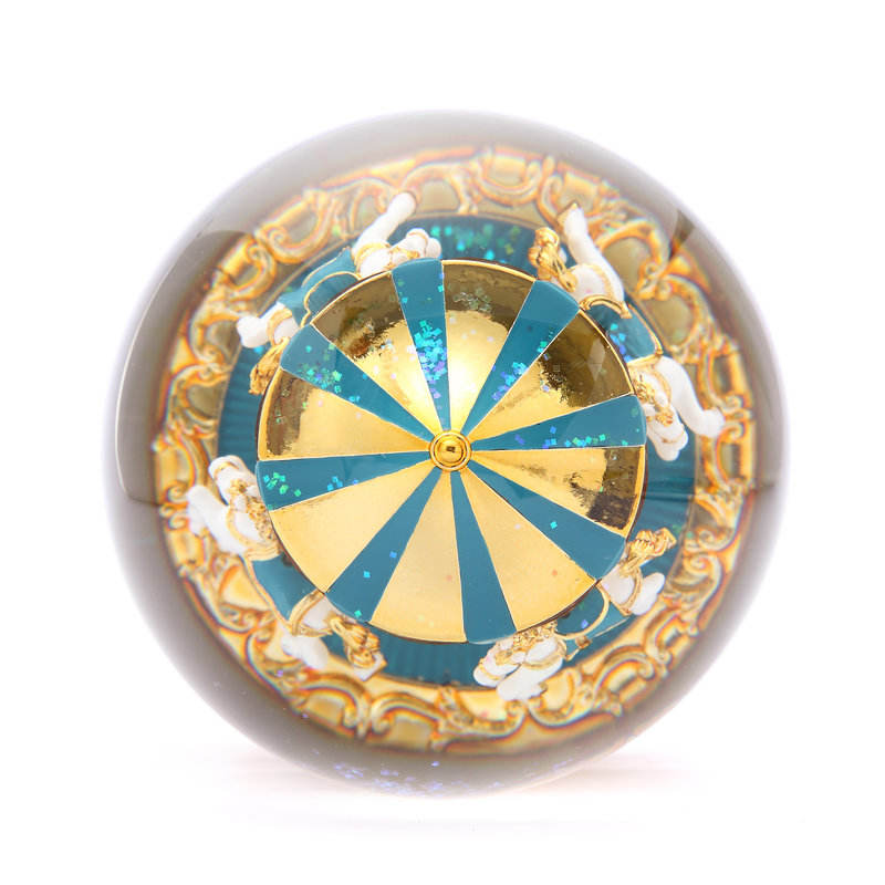 ม้าหมุน3D เรซินแบบแฮนด์เมด120มม. สำหรับเด็กเล็กดนตรีสีเขียวทอง