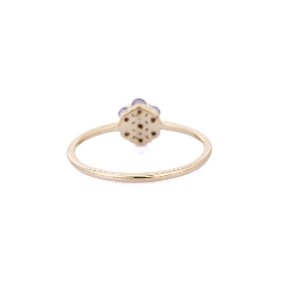แหวนพลอยทองคำแท้14K สำหรับผู้หญิงและเด็กผู้หญิงเครื่องประดับชั้นดีสำหรับงานแต่งงานแหวนพลอยสีม่วงตัดตามธรรมชาติ