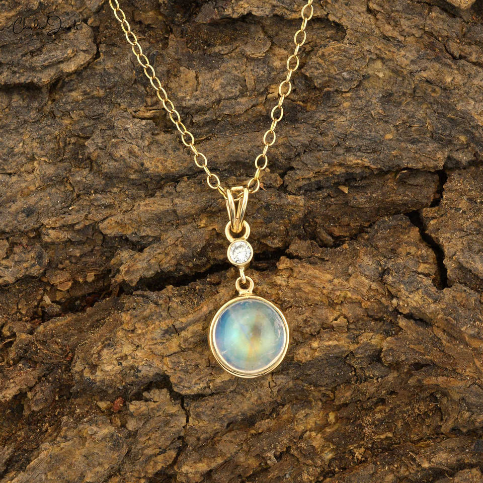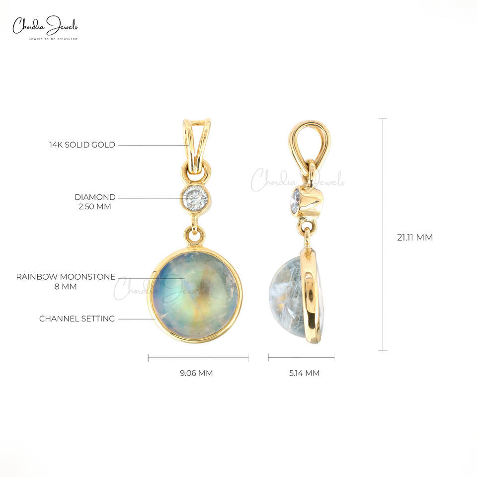ขายดีที่สุด14K เพชรสีเหลืองทองและรุ้งจี้มูนสโตนชุดกรอบกลมเครื่องประดับทอง14K