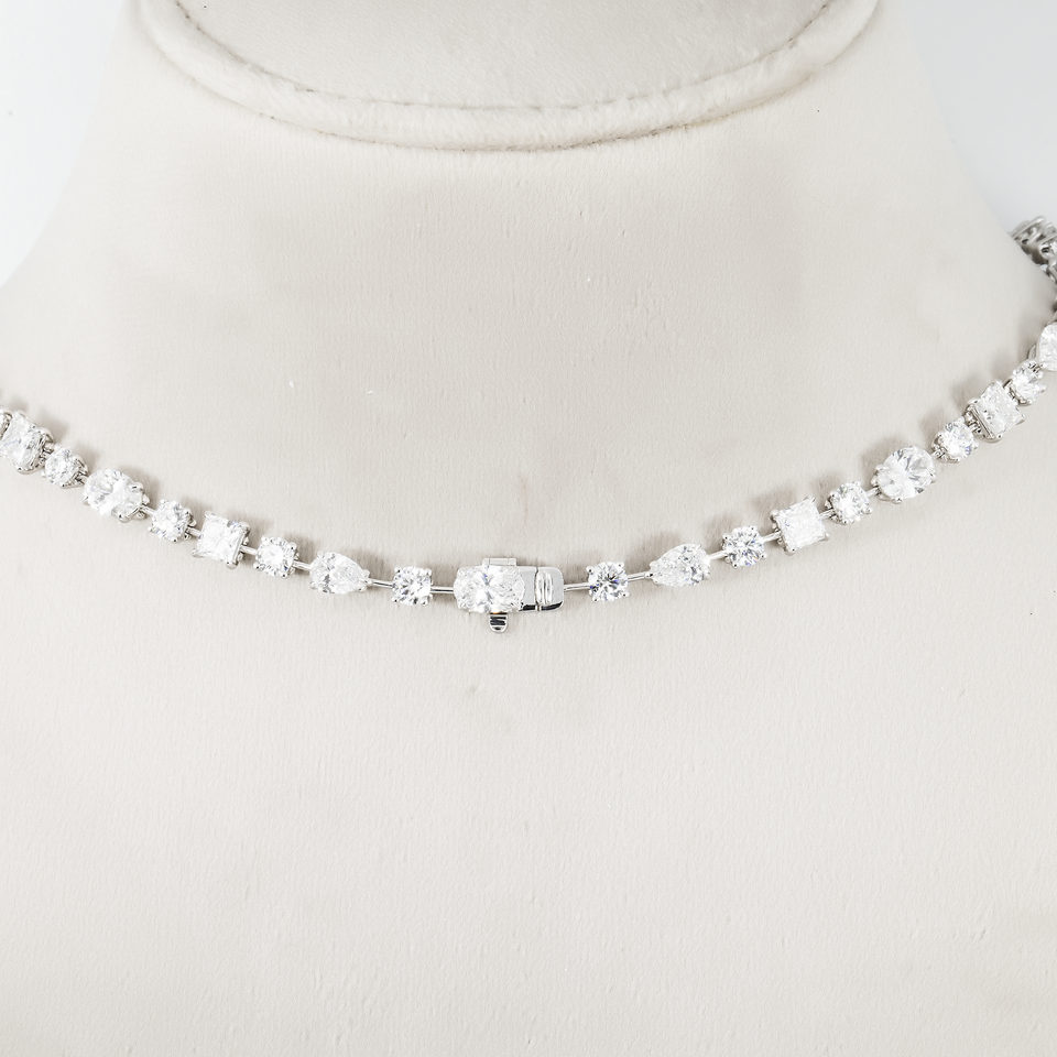 สร้อยคอเพชรทรงหยดน้ำสองแถว ทองคำขาว 18K งานฝีมือประณีต ขายดีที่สุด มีจำหน่ายในราคาส่งออก