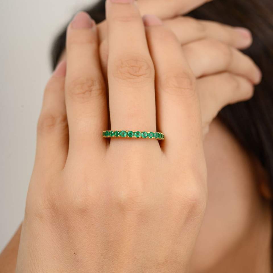 ขายดีที่สุด18K แข็งสีเหลืองทองอินฟินิตี้แหวนวงแหวนซ้อนกันได้เครื่องประดับแต่งงานมรกตทรงกลมตัดตามธรรมชาติหรูหราสำหรับผู้หญิง