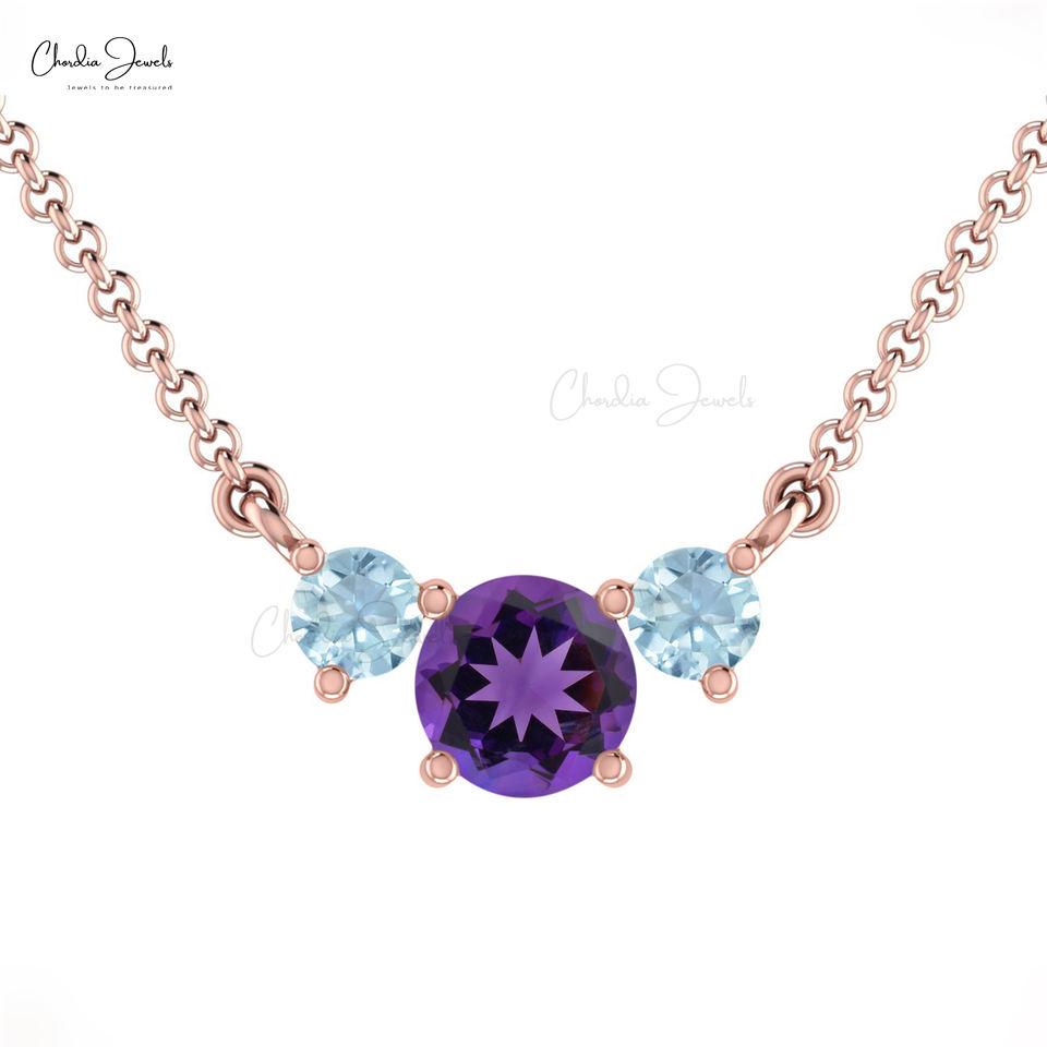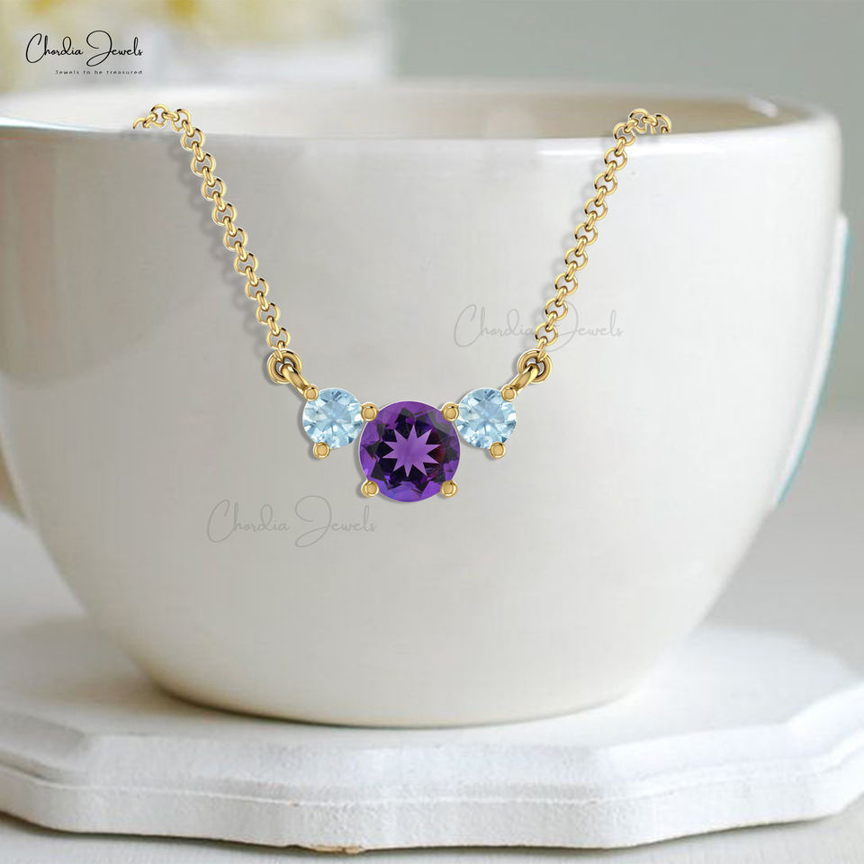 สร้อยคอนำโชคสำหรับเจ้าสาว tcw อเมทิสต์0.42ธรรมชาติสี2025มีสเน่ห์14K สร้อยคอทองพลอยสีฟ้าสามชิ้นเครื่องประดับตามสั่งสำหรับผู้หญิง
