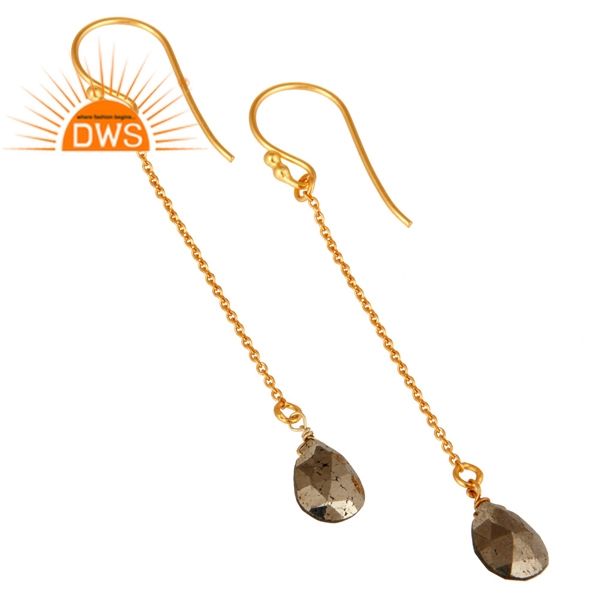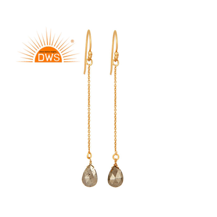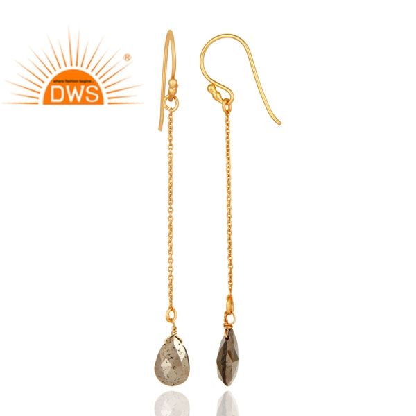 ต่างหูเงินแท้ประดับพลอยไพไรต์ธรรมชาติทรงยาว รุ่นขายดีประจำปี 2026 สำหรับผู้หญิง จากผู้ผลิตเครื่องประดับ