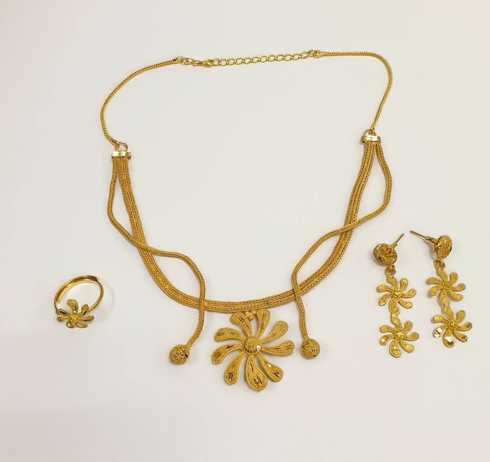 ชุดต่างหูสร้อยคอและแหวนไข่มุกชุบทอง24KT ดีไซน์เสน่ห์2กรัมสำหรับงานแต่งงาน