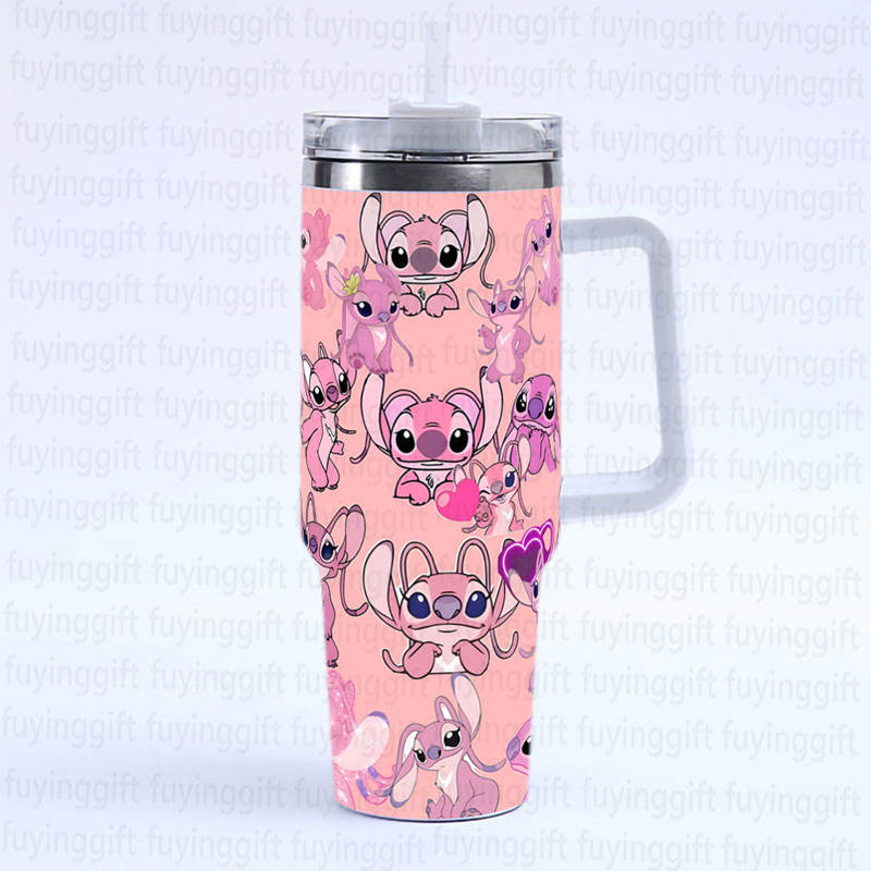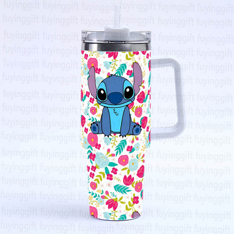 แก้วน้ำเก็บความเย็นสุญญากาศสองชั้น ขนาด 40 ออนซ์ พร้อมหูจับ ลายการ์ตูนสติทช์ สำหรับใช้ในรถยนต์และกิจกรรมกลางแจ้ง ขายดีที่สุด