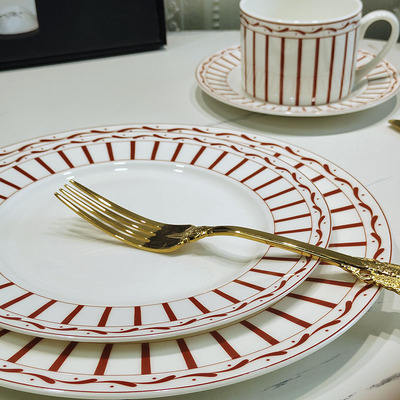 Best Selling 4pcs Nordic Luxury Red Line Dining Room Set Ceramic Plate With Gift Box