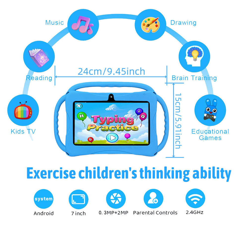 แท็บเล็ตสำหรับเด็กขนาด7นิ้วพร้อมหน่วยความจำ2GB HD แบบพกพาได้หลายแอปสีสันสดใสสำหรับวันคริสต์มาสสีดำ