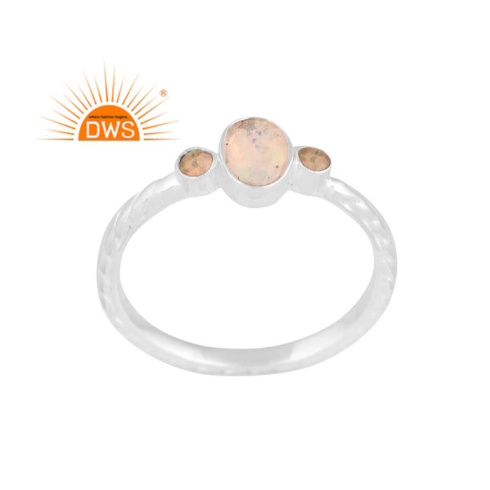 แหวนโอปอลจากเอธิโอเปียนธรรมชาติทำจากเงินสเตอร์ลิง925อัญมณีโอปอลแบบเรียงซ้อนได้ผู้ผลิตเครื่องประดับตามต้องการ