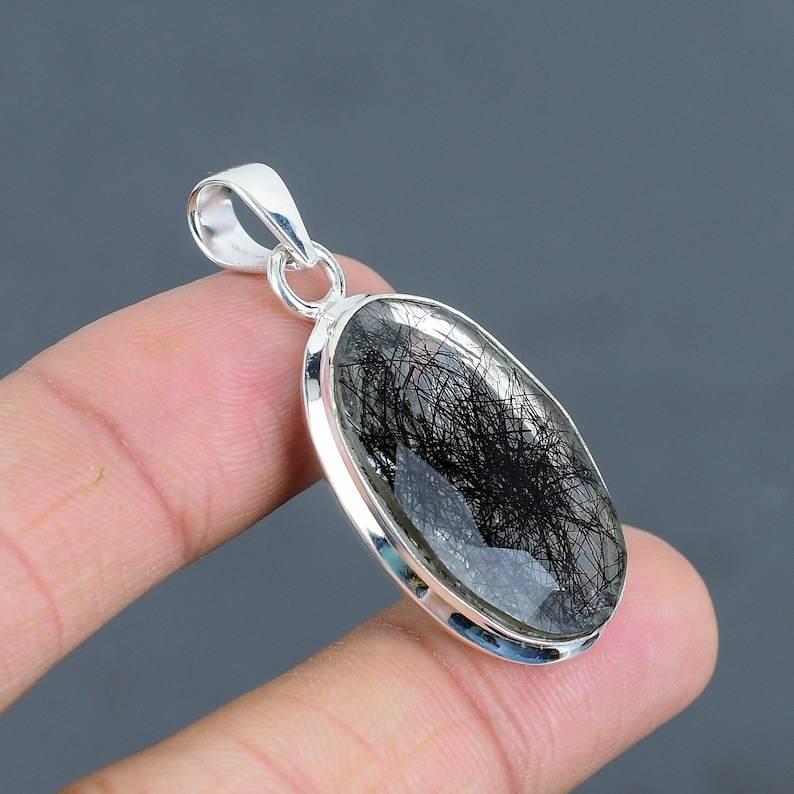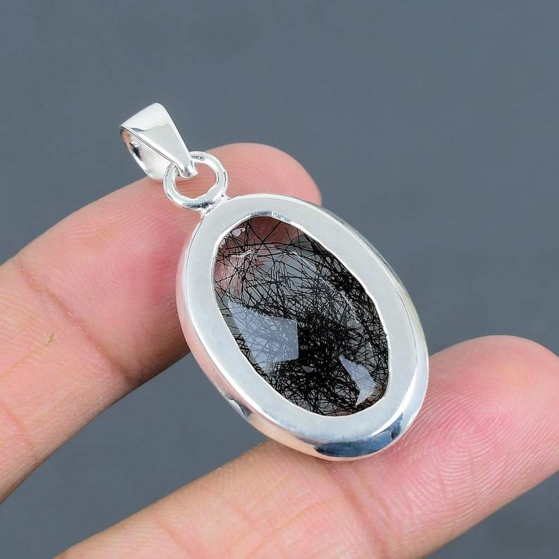 ขายดีที่สุด925จี้เงินแท้ดีไซน์เนอร์สีดำธรรมชาติเป็นเหลี่ยมเพชรพลอยประดับอัญมณีสีทึบขายส่งสำหรับผู้หญิง