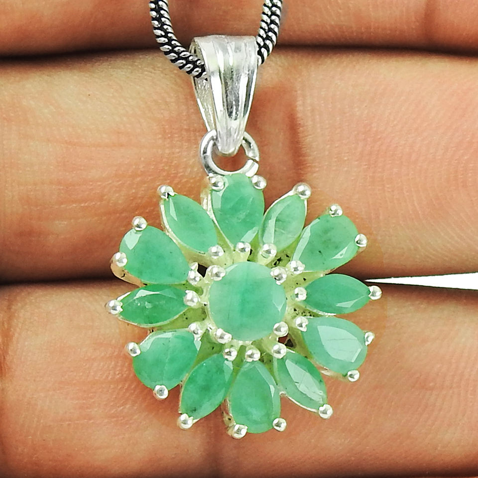 ขายดีที่สุด925เงินสเตอร์ลิงธรรมชาติมรกตพลอยรูปดอกไม้จี้สำหรับเธออาจจะเกิดเครื่องประดับขายส่ง