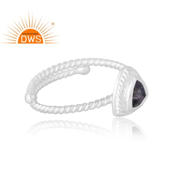 แหวนพลอยอิโอไลต์ธรรมชาติทำจากเงินสเตอริง925ขายดีเครื่องประดับออกแบบได้เองของขวัญสำหรับผู้หญิงสำหรับเธอ