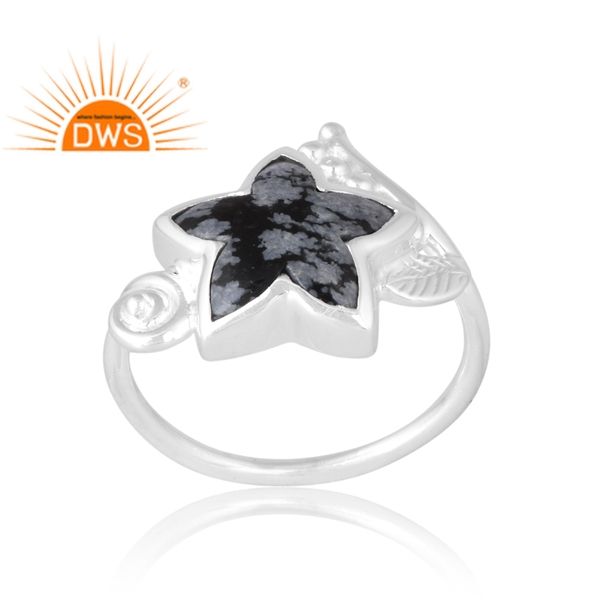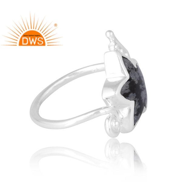 แหวนพลอยออบซิเดียนเกล็ดหิมะธรรมชาติทำจากเงินสเตอร์ลิง925ขายดีที่สุดเครื่องประดับตามต้องการของขวัญสำหรับผู้หญิงสำหรับผู้หญิง
