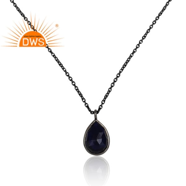 ที่ขายดีที่สุด925เงินสเตอร์ลิงจี้สร้อยคอสีฟ้าคอรันดัมพลอยจี้สร้อยคอเครื่องประดับผู้ผลิต