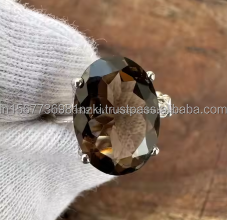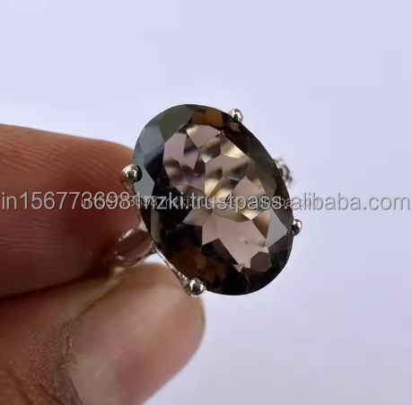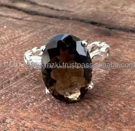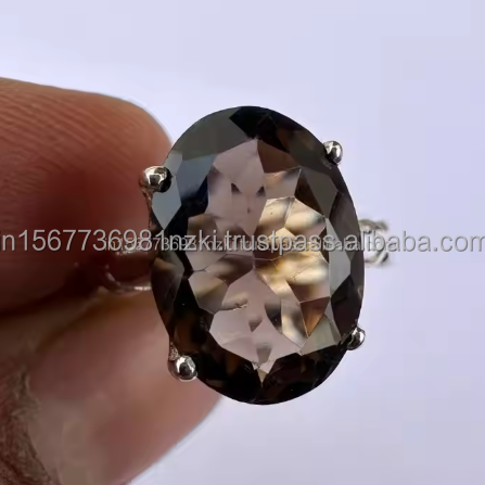แหวนวินเทจสีเงินสเตอร์ลิงของ925เครื่องประดับควอตซ์แบบรมควันทำด้วยมือเครื่องประดับแหวนหมั้นชุบทอง