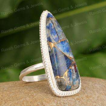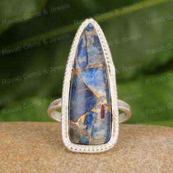 ขายดีที่สุด925เงินสเตอร์ลิงสำหรับผู้หญิงค็อกเทลดีไซน์เนอร์ของแท้ Lapis Lazuli ทองแดงล้านล้านเครื่องประดับ10x20มม.