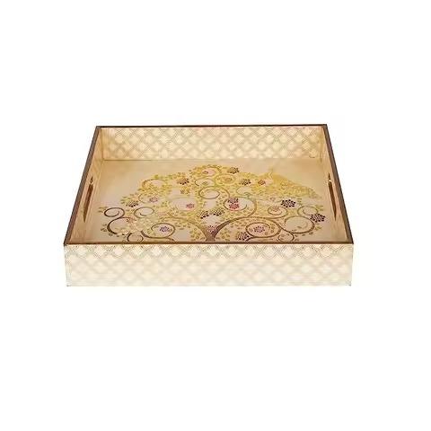 ถาดเสิร์ฟไม้กระถินเทศลายดอกไม้ ขายดีที่สุด ถาดไม้เคลือบธรรมชาติ