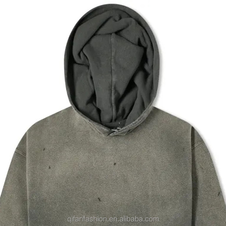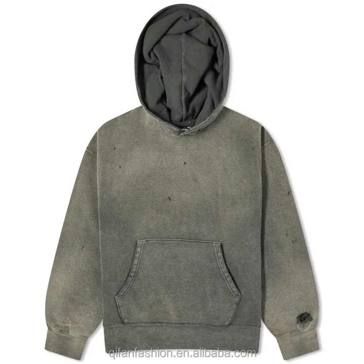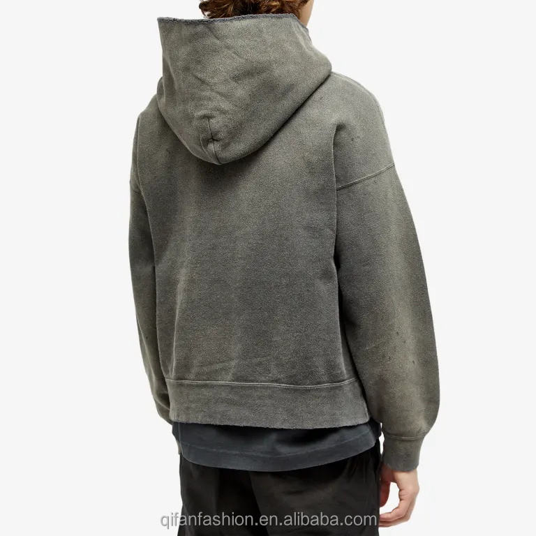 เสื้อฮู้ดล้างกรดสำหรับผู้ชายสีดำตามสั่งสไตล์สตรีทแวร์ใหม่สไตล์สตรีทสำหรับฤดูหนาวขายส่ง