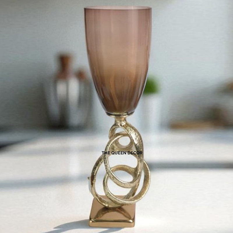 แจกันดอกไม้ปรับแต่งได้ตามต้องการแจกันแก้วกลมทำจากอลูมิเนียม