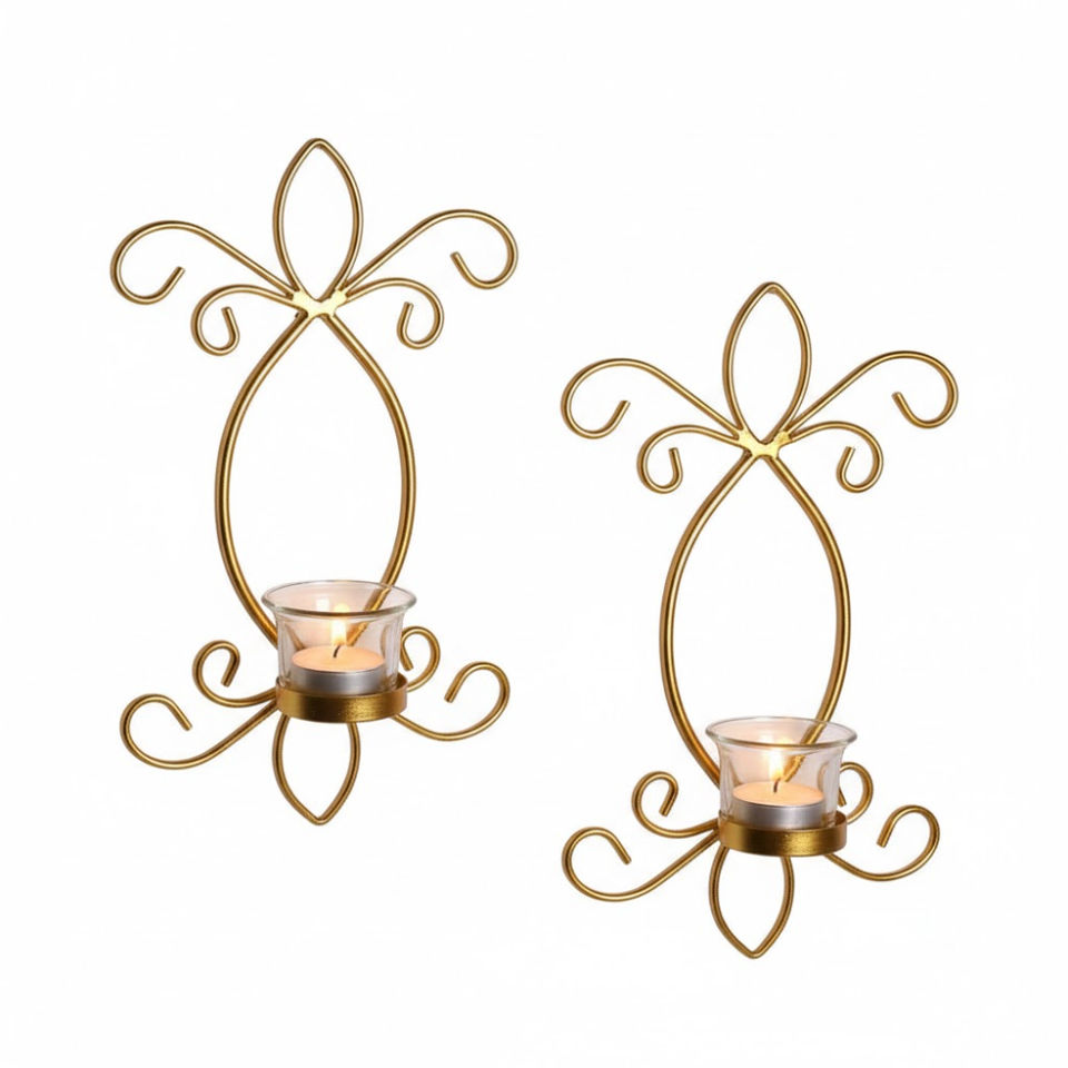 เชิงเทียนติดผนังโลหะสีทองโบราณขายดี ชุด 2 ชิ้น ของตกแต่งผนังแบบแขวน ลดราคา