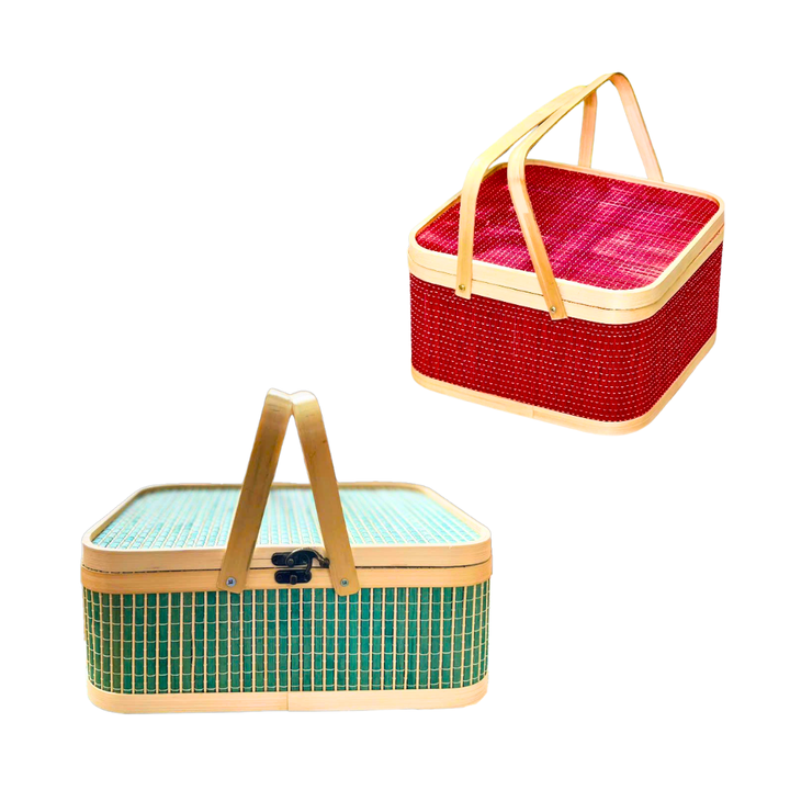 ตะกร้าของขวัญไม้ไผ่ขายดี พร้อมฝาปิดและหูหิ้ว มีสีให้เลือกตามสั่ง งานฝีมือหวาย เหมาะสำหรับมอบเป็นของขวัญ