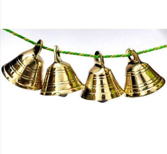 กระดิ่งกริ๊งเบสสำหรับตกแต่งคริสต์มาสแบบทำมืออุปกรณ์ตกแต่งคริสต์มาสที่แขวนทำจากทองเหลืองบริสุทธิ์