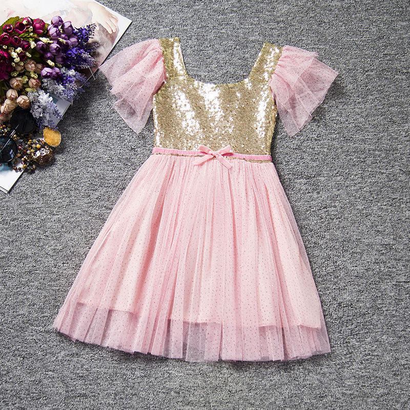ชุดเดรสเด็กผู้หญิงลายดอกไม้ผ้าลูกไม้ประดับเลื่อมสวยงามสไตล์อเมริกันขายดีที่สุดสำหรับฤดูร้อน