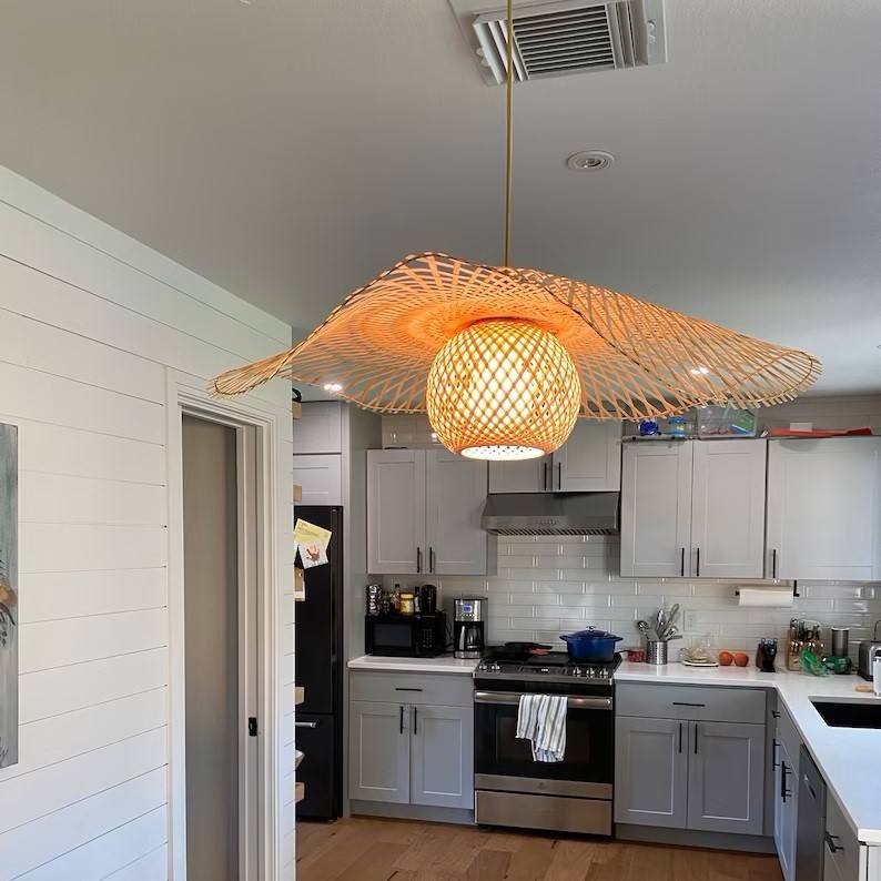 โคมไฟห้องครัวทำด้วยมือทำจากไม้ไผ่ธรรมชาติสำหรับตกแต่งบ้าน