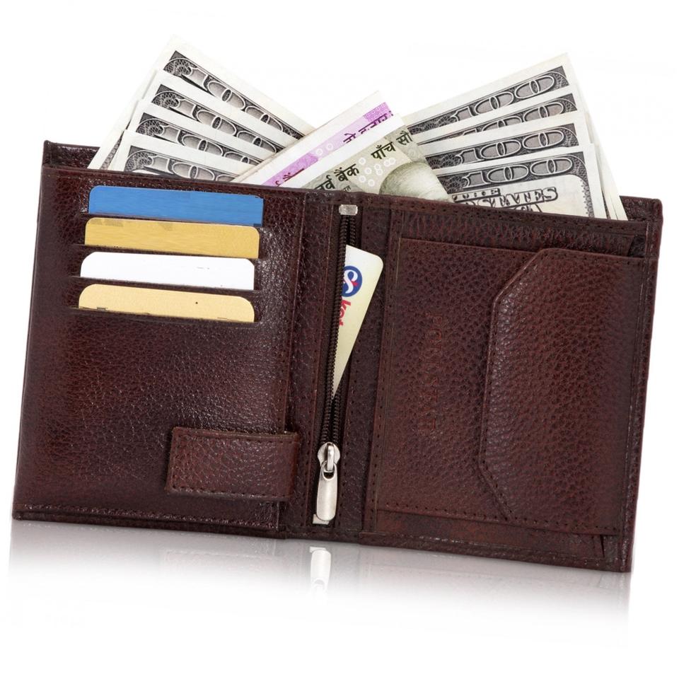 กระเป๋าสตางค์ Bifold Mens ที่ขายดีที่สุดหนังแท้นุ่มสีน้ำตาล