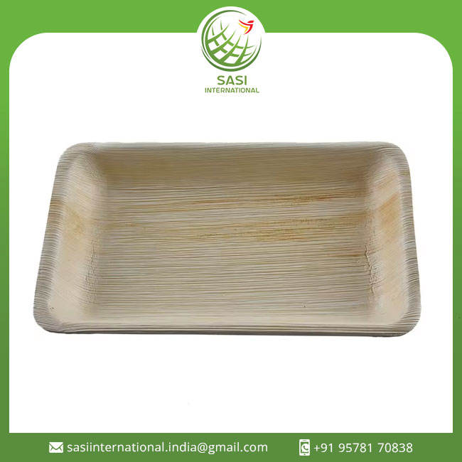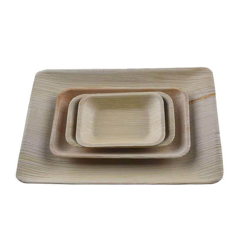 แผ่นทิ้งที่ย่อยสลายได้ทางชีวภาพที่ขายดีที่สุดถาดสี่เหลี่ยมผืนผ้าใบปาล์มมีขนาดต่างๆ