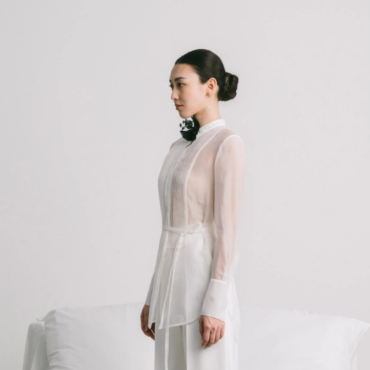 เสื้อผ้าบูติกสำหรับผู้หญิงเสื้อเบลาส์แขนยาวสีเทาปกเล็ก
